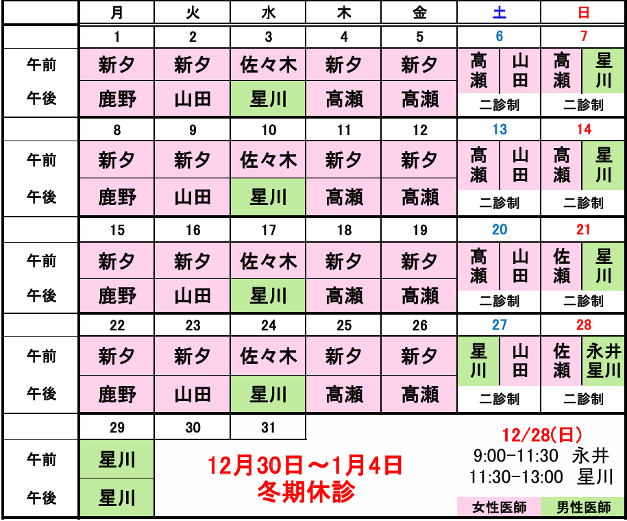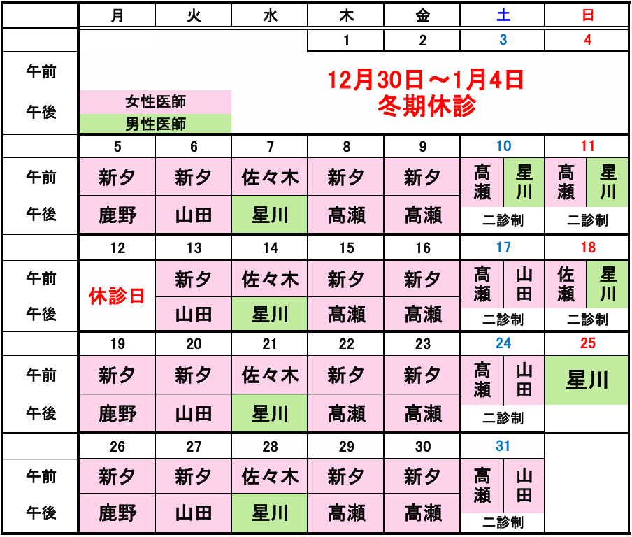 2025年 12月 2026年1月・2月・3月の担当医表はこちら