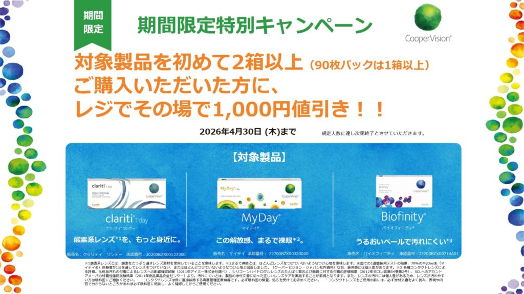 - 一定箱数のご購入が必要になります。当院では1DAYメニコンDear TEARのみ対象です。